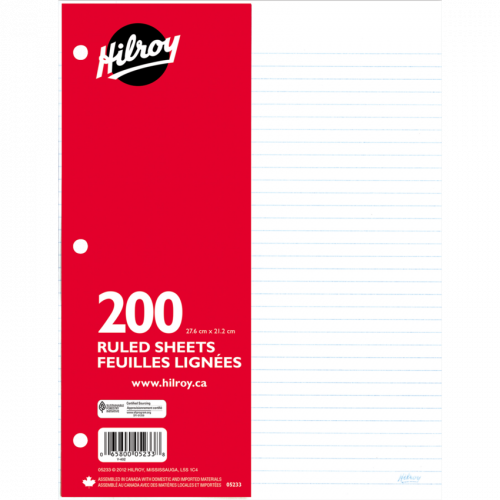 Hilroy Refill Sheets 10-7/8" x 8-3/8" 200 sheets/pkg