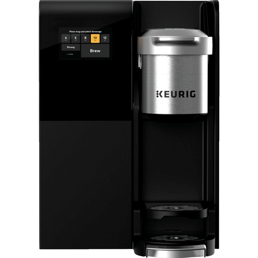 Stands up to the demands of your coffee station. Designed for use in large businesses, it offers a choice of 5 cup sizes including 12 oz. brew size. Features touch screen, an industrial easy grip handle, and a plumbed water tank for back-to-back brewing. With strong brew option for increased strength and bold tastes. Travel mug-friendly with removable drip tray.