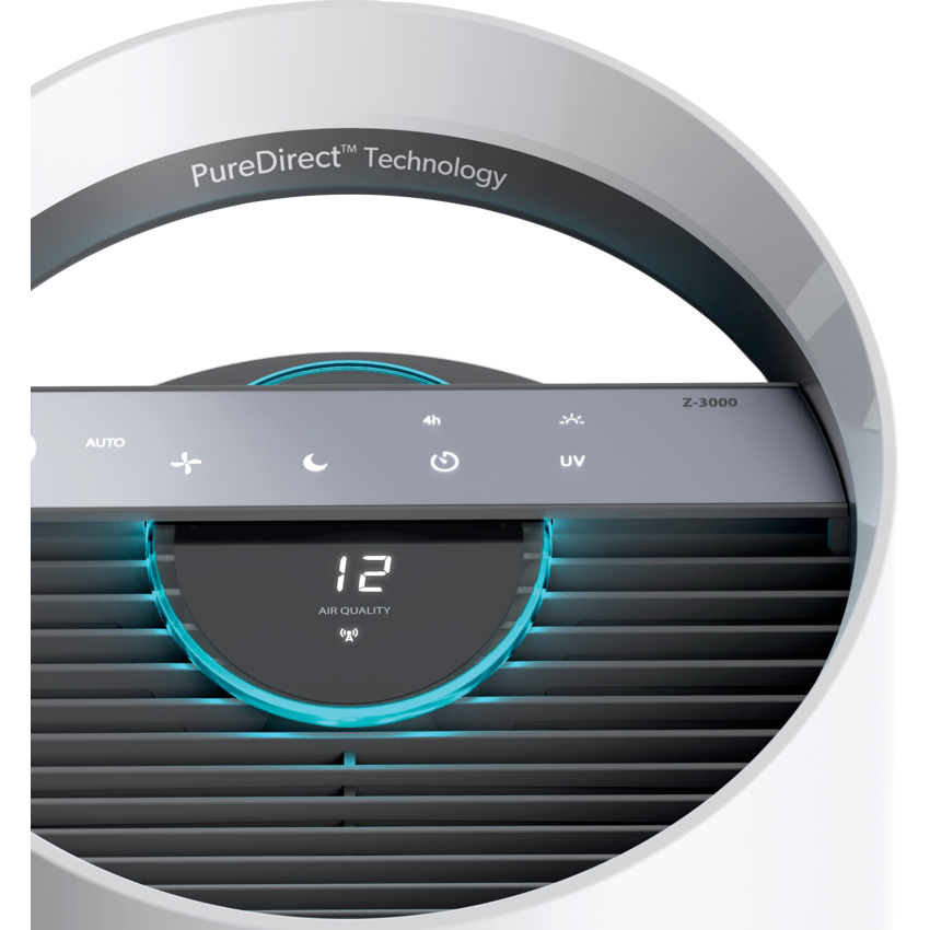 Say goodbye to dust, pollen and other allergens. Place the remote SensorPod away from the air purifier to optimize clean air delivery. A colour-coded illuminated ring and numerical value communicates good, moderate or poor air quality. Covers 750 sq. ft. Carbon, HEPA and UV filters. Auto and dimmer mode. Timer settings of 2, 4, 8, or 12 hours. Filter change indicator type. 33-64 dB noise level. 2-year warranty. White.