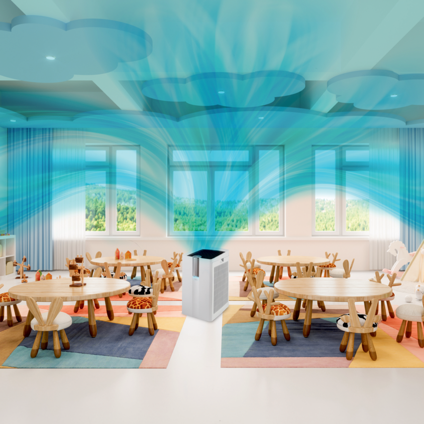 Air purification designed for large professionial spaces with dual-sided True HEPA/Activated Carbon filtration, TRU-BEAM™ UV-C light, plus SensorPod™ and AQI monitor. Z-6000. TRU-BEAM™ UV-C inactivates on average 99.9% of viruses and bacteria trapped in the True HEPA filter. The True HEPA filter captures airborne viruses and bacteria while the Activated Carbon filter breaks down volatile organic compounds (VOCs) like smoke and. Covers 1750 sq. ft at 2 air changes per hour. Carbon, dual HEPA, and UV. Auto mode. Timer settings of 2, 4, 8, or 12 hours. 30-63 dB noise level. White/Silver.
