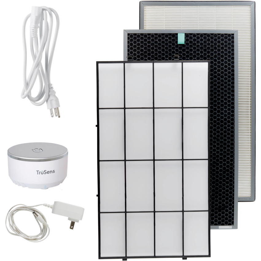 Air purification designed for large professionial spaces with dual-sided True HEPA/Activated Carbon filtration, TRU-BEAM™ UV-C light, plus SensorPod™ and AQI monitor. Z-7000. TRU-BEAM™ UV-C inactivates on average 99.9% of viruses and bacteria trapped in the True HEPA filter. The True HEPA filter captures airborne viruses and bacteria while the Activated Carbon filter breaks down volatile organic compounds (VOCs) like smoke and. Covers 2000 sq. ft at 2 air changes per hour. Carbon, dual HEPA, and UV. Auto mode. Timer settings of 2, 4, 8, or 12 hours. 30-66 dB noise level. White/Silver.