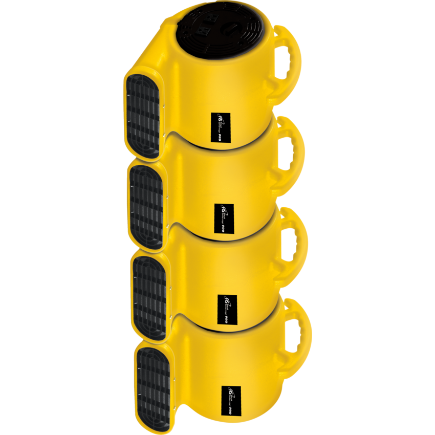 Compact yet powerful. Ideal for drying floors, walls and ceilings during renovation work, water damage and janitorial cleaning. Multiple units can be linked together for drying larger areas. Four angled drying positions. Powerful 1/3 HP motor. Air velocity up to 800 CFM. Three fan speed settings. Yellow.