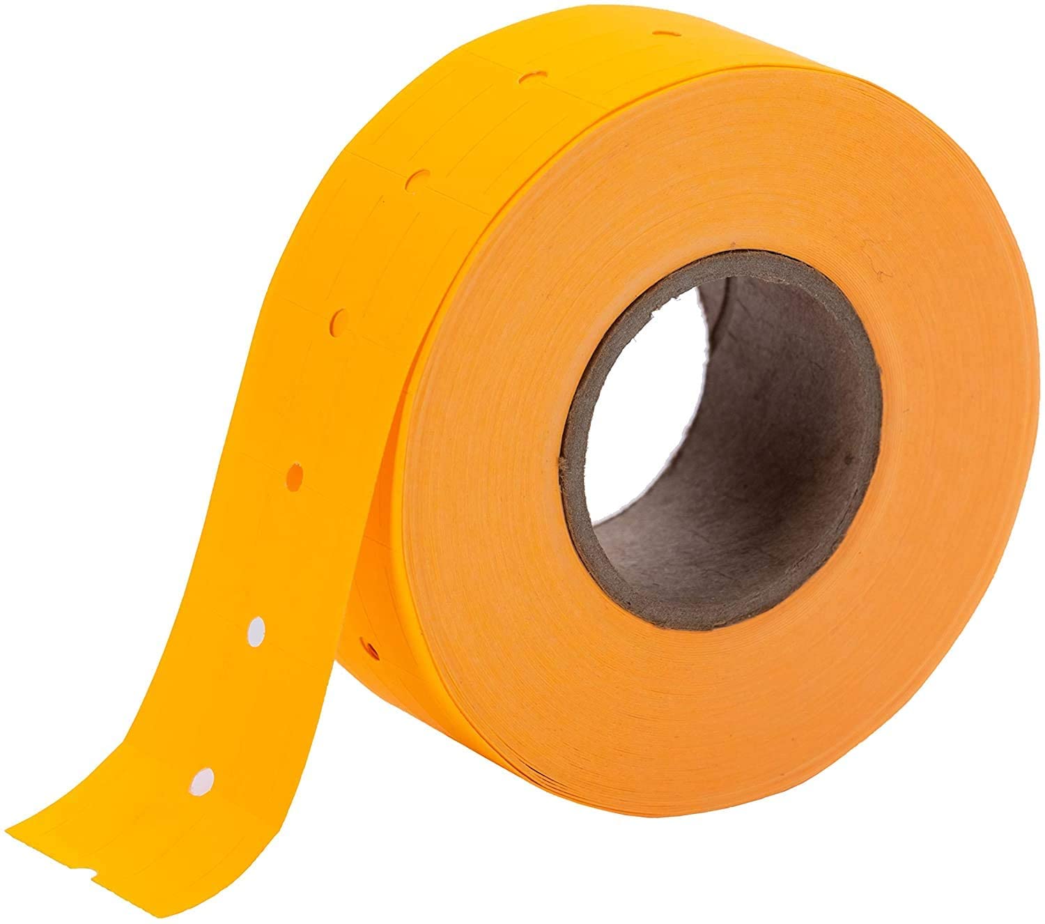 Orange price gun labels, 1,000 labels per roll. For use in Motex 5500, MX5500 EOS, 2212, Western M-3, Samark, Towa I, Halo 1Y, WCT168, Sanwa, Dennison Mighty One.