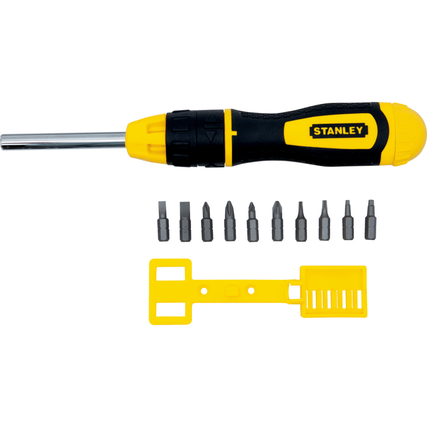 Three-position switch enables clockwise and counterclockwise ratcheting and locked position. Durable bi-material handles for comfortable grip. Magnetic bit holder for secure storage of bits. Internal bit storage for easy access and fast changeover of bits. Yellow. 10 pieces/set.