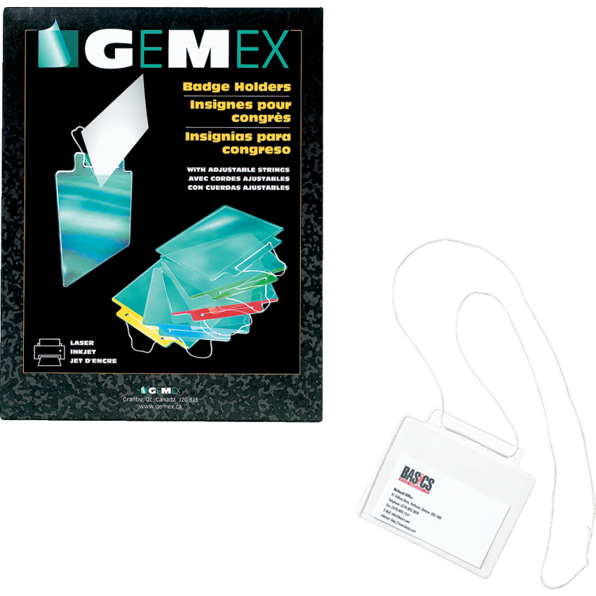 Badge holders are made of clear soft vinyl for use at seminars, conventions and meetings or to identify clients, visitors, and sales reps. Come with 8-1/2" x 11" perforated sheets of white prepunched insert cards (5 mil) for printing with any inkjet or laser printer. Adjustable white strings are pre-attached and conveniently hang around neck.