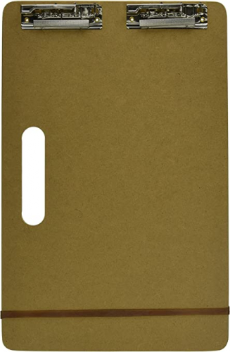 These heavy-duty drawing boards are just what every student needs. Designed for use in the studio or when painting plein air. They can easily be carried by the convenient cut out handle. Sturdy spring-loaded clips and a heavy-duty rubber band help to keep your artwork secured!