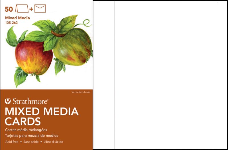 These blank cards are made of 400 Series Mixed Media heavy-weight 140lb. (300gsm) paper. The acid-free paper features the attributes of a watercolor paper but with a vellum drawing finish, making the cards ideal for watercolor, gouache, acrylic, graphite, pen & ink, colored pencil, marker and collage. Each pack includes fifty cards and envelopes. This small card is ideally suited for formal announcements, gift enclosures, invitations, change of address and thank you notes. The full size cards measure 5" x 6.875" and include 5.25" x 7.25" envelopes.