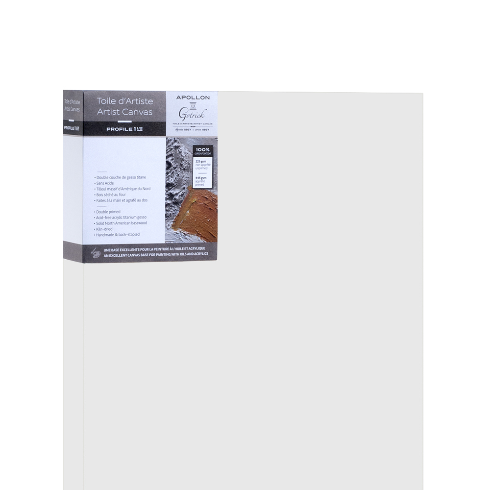 7 oz 100% cotton canvas on 1 1/2 in. thickness stretcher bars - Double-primed with gesso for a finished weight of 15 oz - Suitable for oil, acrylic paints and mixed media applications - Back stapled