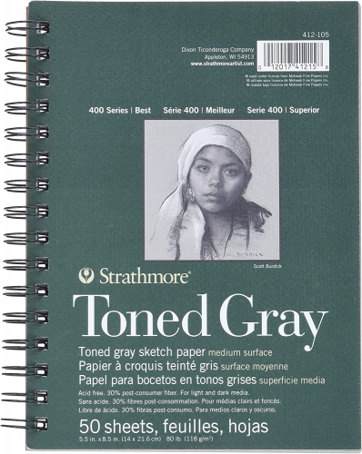 This sketch paper is ideal for light and dark media. 100% recycled, contains 30% post-consumer fiber, acid free.