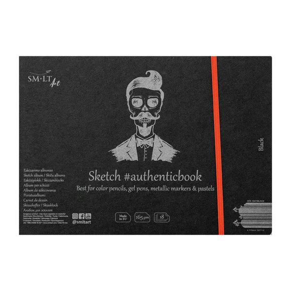 With slightly textured black paper. Best for coloured pencils, gel pens, metallic markers, pastels. Inside paper is tree-free and FSC certified. With natural coloured cardboard cover and divider. The album is stitched, with panoramic drawing possibility.