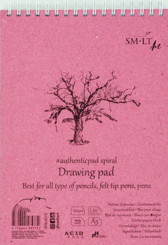 With white paper. Easy erasing surface. Best for pencils, pens, crayons, chalks, charcoal. Inside paper is Acid-free, pH Neutral, FSC and EU Ecolabel certified. With natural colored cardboard cover, hard back, microperforated sheets and spiral on top.