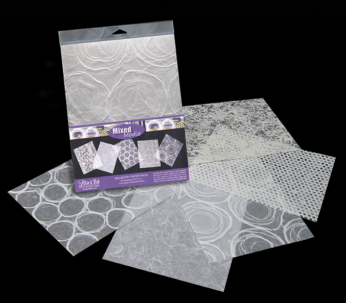 This new 20 sheet 8.5″ x 11″ mulberry paper pack includes five unique styles of white textured semi-sheer mulberry papers from Thailand, four sheets of each style, perfect for mixed media and crafting: