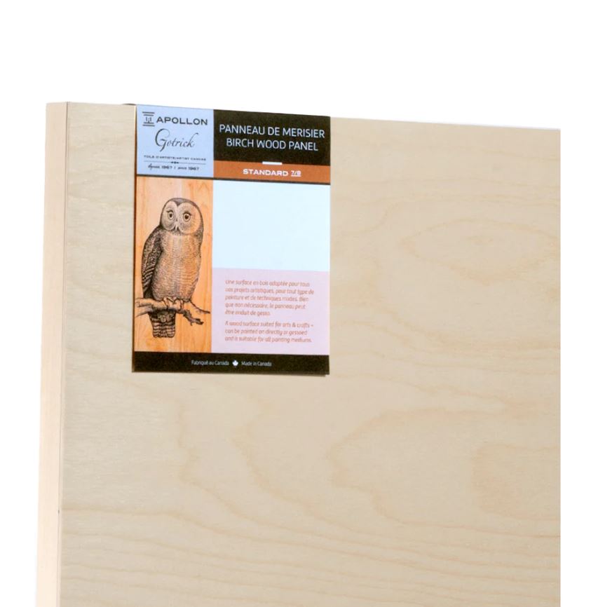 Wood panel - 3 mm russian birch surface cradled on a 7/8 in. thickness traditional wood frame - Can be used with all painting and drawing mediums - Although priming is not necessary for some applications, the panel can be primed with gesso.