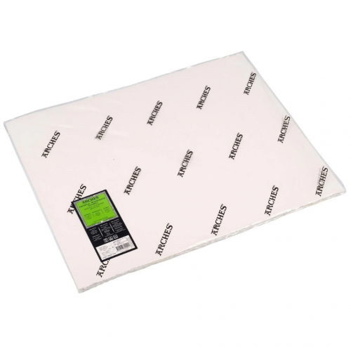 ARCHES® Natural White Watercolour Sheets. The only 100% cotton paper in the world to gelatin size its watercolour paper “to the core”. This preserves the lustre and transparency of the colours whilst preventing paints from penetrating the paper. It allows superposing of washes and gives it added strength to resist erasing and scratching without tearing or linting and can absorb a large amount of water with limited deformation.