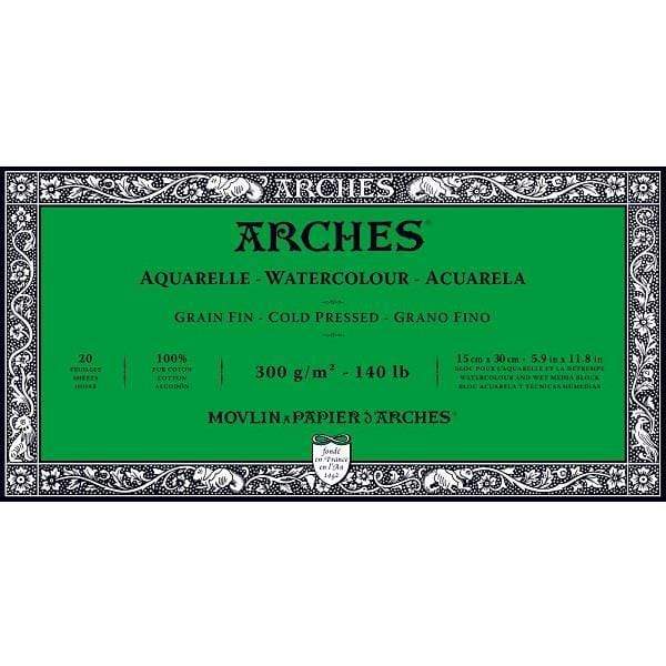 ARCHES® Watercolour Cold Pressed 5.9″ x 11.8″ – 140lb / 300gsm Natural White Block, 20 Sheets