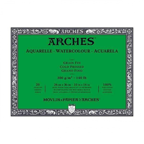 ARCHES® Watercolour Cold Pressed 10″ x 14″ – 140lb / 300gsm Natural White Block, 20 Sheets