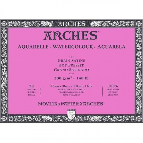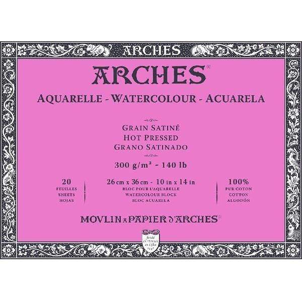 ARCHES® Watercolour Hot Pressed 10″ x 14″ – 140lb / 300gsm Natural White Block, 20 Sheets