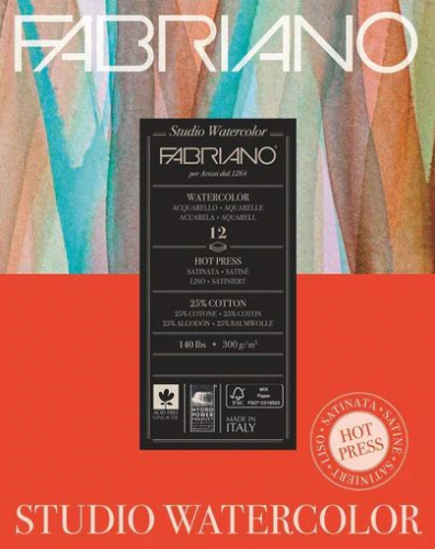Fabriano Studio Watercolour Pad Hot Pressed 140lb 8" x 10" 12Sheets