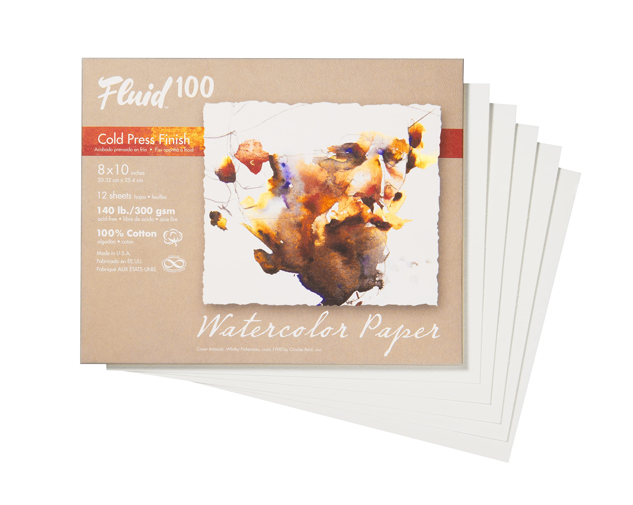 Fluid 100 Watercolour Paper Cold Press Pochette 8" x 10" 12sheets