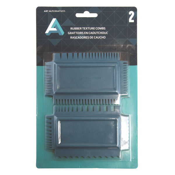 Use these multi-textured comb scrapers to create lines, stripes, cross patterns and textures in clay, paint and other mediums. Firm rubber provides control and stability. Each rubber comb features a different design on each of its four edges. The set includes two combs.