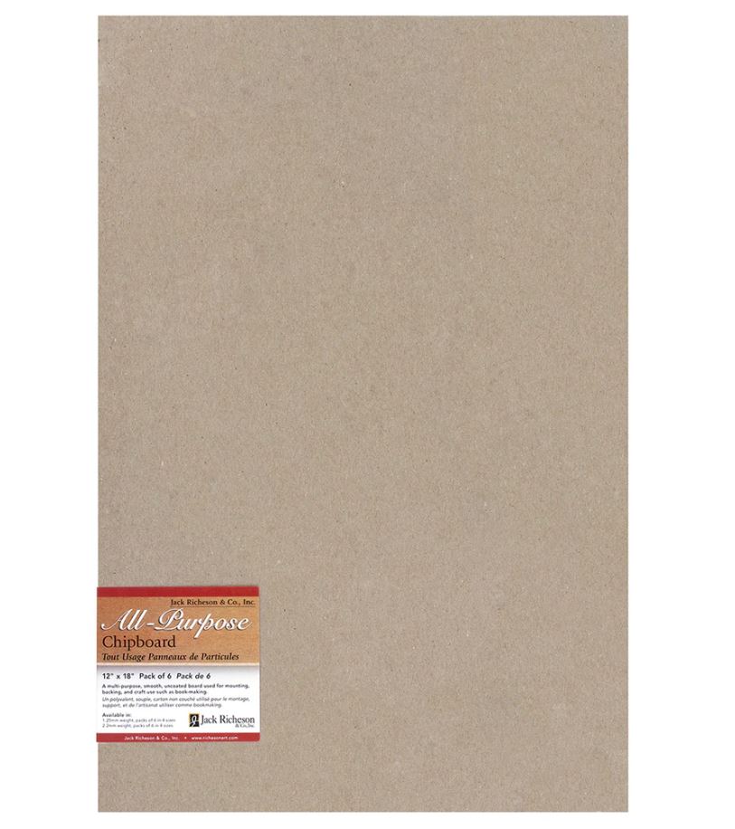 All-purpose chipboard works great for mounting, backing, bookmaking, and constructing. It has a smooth, uncoated surface on both sides. 1.5mm thickness.