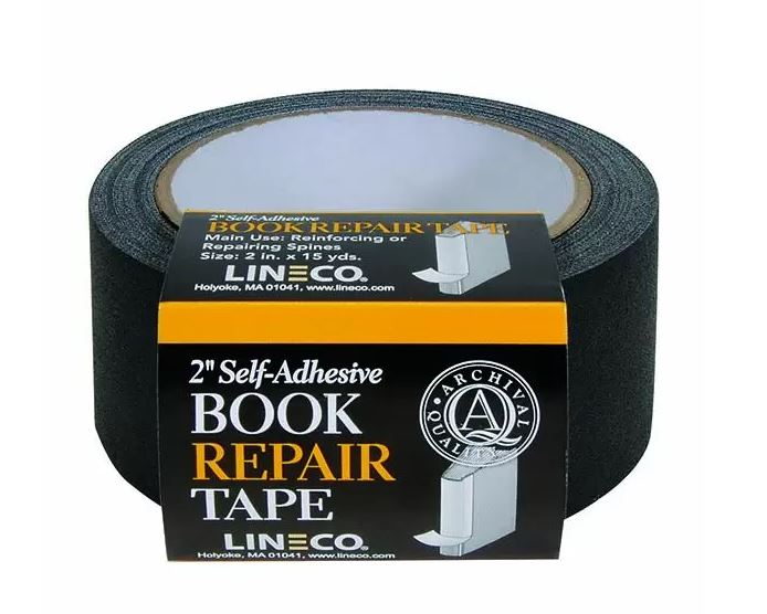 This book repair tape is a vinyl coated cloth tape that is water and abrasion resistant. It has a matte finish, which makes it esthetically preferable and easily conforms to the contour of book spines. Each 2" x 15 yard pressure-sensitive roll can be used to attach torn book covers. Please note: This material is not considered to be archival quality and should not be used on rare books or other artifacts.