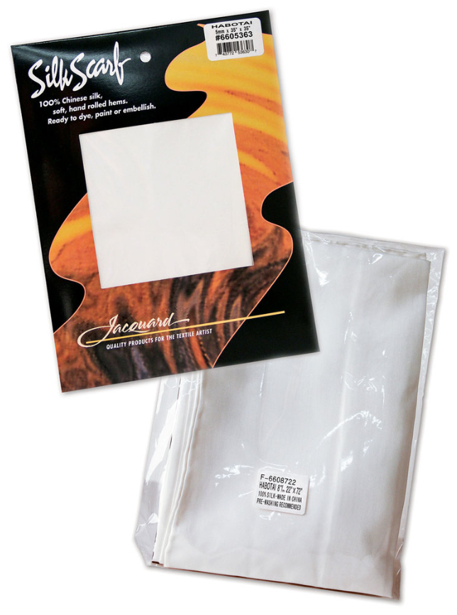 Pre-hemmed Habotai 8mm silk scarves, suitable for any painting or decorating technique.