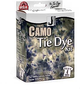This kit has a unique tie dye method designed to get the best Camouflage look. Complete instructions for the Classic Camo pattern are included as well as ideas for creating 3 other dye patterns.