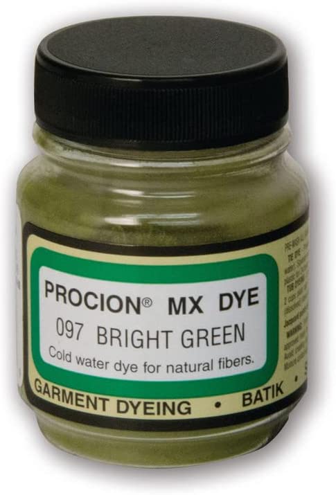 Procion MX dyes are “cold water dyes” that are fixed chemically instead of with heat. This unique property sets Procion MX apart from all other dyes and establishes them as the undisputed king of backyard dyeing, batik and tie dye. Because Procion MX dyes can be used away from the stovetop, they are also the ideal colors for shibori, ice dyeing, tub and low water immersion dyeing, printing, direct painting and other “alternative” dye applications. As a fiber-reactive dye, Procion MX forms a strong covalent bond with cellulosic fibers, making it the most permanent and washfast of all dyestuffs. Mix the concentrated dye powder with tap water to create the most vibrant colors possible for cotton, linen and other plant-based fabrics (may also be used with protein fibers if acidified). Procion MX dyes are typically used with a soda ash fixative, which can be added directly to the dye bath or used to pretreat the fabric as in tie dyeing and other “batch setting” techniques. Typically, one 2/3 oz/18.71 g bottle will dye more than 1 lb/0.45 kg of dry fabric (very bright colors will require more dye and pastel colors will require less).