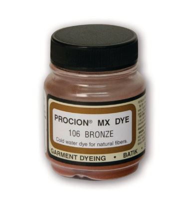 Procion MX dyes are “cold water dyes” that are fixed chemically instead of with heat. This unique property sets Procion MX apart from all other dyes and establishes them as the undisputed king of backyard dyeing, batik and tie dye. Because Procion MX dyes can be used away from the stovetop, they are also the ideal colors for shibori, ice dyeing, tub and low water immersion dyeing, printing, direct painting and other “alternative” dye applications. As a fiber-reactive dye, Procion MX forms a strong covalent bond with cellulosic fibers, making it the most permanent and washfast of all dyestuffs. Mix the concentrated dye powder with tap water to create the most vibrant colors possible for cotton, linen and other plant-based fabrics (may also be used with protein fibers if acidified). Procion MX dyes are typically used with a soda ash fixative, which can be added directly to the dye bath or used to pretreat the fabric as in tie dyeing and other “batch setting” techniques. Typically, one 2/3 oz/18.71 g bottle will dye more than 1 lb/0.45 kg of dry fabric (very bright colors will require more dye and pastel colors will require less).