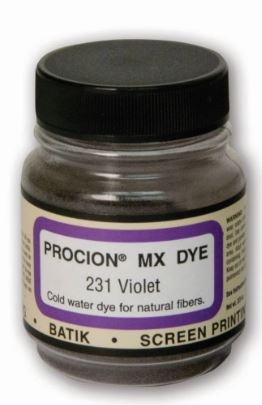 Procion MX dyes are “cold water dyes” that are fixed chemically instead of with heat. This unique property sets Procion MX apart from all other dyes and establishes them as the undisputed king of backyard dyeing, batik and tie dye. Because Procion MX dyes can be used away from the stovetop, they are also the ideal colours for shibori, ice dyeing, tub and low water immersion dyeing, printing, direct painting and other “alternative” dye applications. As a fiber-reactive dye, Procion MX forms a strong covalent bond with cellulosic fibers, making it the most permanent and washfast of all dyestuffs. Mix the concentrated dye powder with tap water to create the most vibrant colours possible for cotton, linen and other plant-based fabrics (may also be used with protein fibers if acidified). Procion MX dyes are typically used with a soda ash fixative, which can be added directly to the dye bath or used to pretreat the fabric as in tie dyeing and other “batch setting” techniques. Typically, one 2/3 oz/18.71 g bottle will dye more than 1 lb/0.45 kg of dry fabric (very bright colours will require more dye and pastel colours will require less).