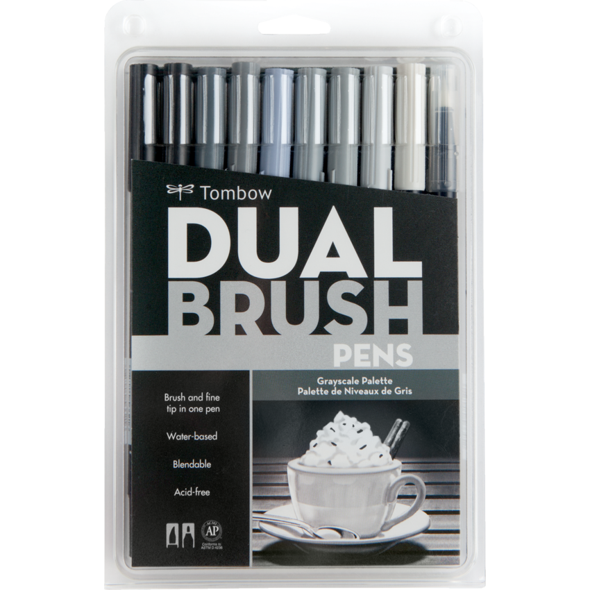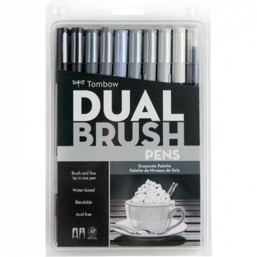 Product Name: Dual Brush Art Pen 10-piece Set - Grayscale Colours