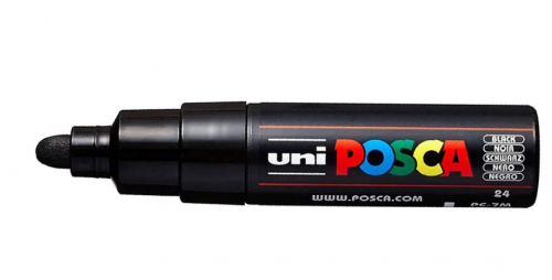 Non-toxic, water-based POSCA paint markers can be used on almost any surface, and are loved by professionals, creative hobbyists and amateurs alike. The alcohol and solvent-free opaque paint covers well, is blendable, dries quickly and can be overlaid when dry. ACMI certified and made in Japan. The PC-7M broad bullet tip marker is ideal for large-scale precision and drawing smooth, curved lines.