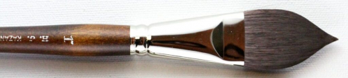 100% synthetic Kazan squirrel hair. Superb water holding capacity and keeps precise point. Short handle.