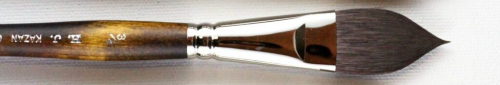 100% synthetic Kazan squirrel hair. Superb water holding capacity and keeps precise point. Short handle.