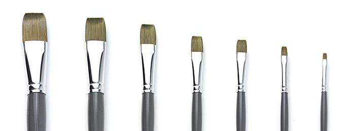 100% synthetic filament, artificially tapered like the shape of natural animal hairs but with superior wearing durability. For heavy bodied paint. Long handle.