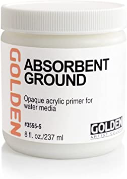 Absorbent Ground is a fluid acrylic medium that dries to a porous, paper-like surface. Applied over gessoed canvas, it facilitates raw canvas-like staining and watercolor effects. Lightfast, permanent and flexible. This is a Health Labeled (HL) Product, and not for use by children.