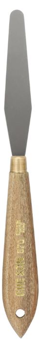 One Piece Tempered Steel. For painting in the impasto technique or mixing and scraping paint, these steel, trowel-style blades are great. These knives have been hand forged by the same family in Italy for over 100 years. Each knife is mounted to a hand polished rosewood handle. The size and shape of the blade result in great differences in spring and control. 3-3/8" blade length, 5/8" blade width