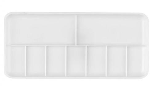 Made of durable, solvent-resistant plastic for use with oils, acrylics, or watercolours, these bright white, plastic palette trays have several round wells, plus slanted wells that allow water or thinner to collect away from the paint. Ideal for the classroom, they are a visual and neat way for children to find the colours they want to use while capturing their masterpieces. This pure white tray is available in an easy to clean heavy-duty plastic and an economic lightweight plastic. 3-5/16" x 7-1/8"