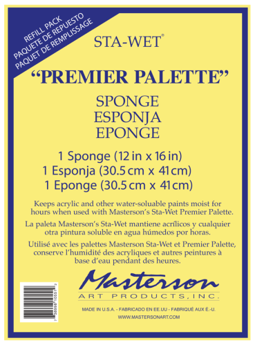 Use the Sta-Wet Sponge in combination with the Masterson Sta-Wet Premier Palette Acrylic Paper to achieve an even distribution of moisture to your paints.