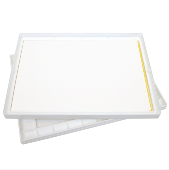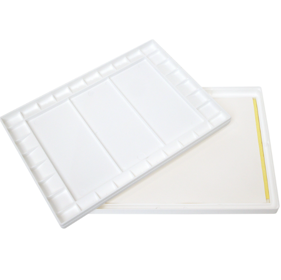 - For use with Watercolors, remove the paper and sponge, and use the wells and mixing areas for paint storage and mixing. Produced with high quality stain resistant resins.