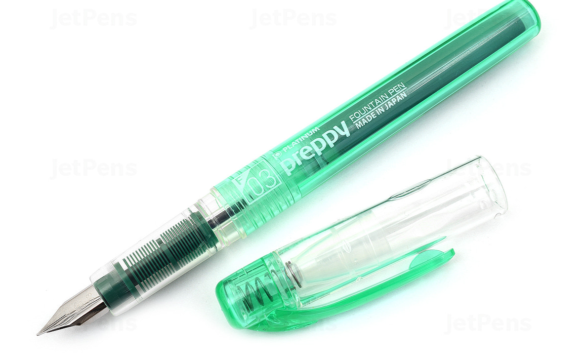 The Platinum Preppy fountain pen has a reputation as a smooth-writing, high-quality fountain pen. The Preppy features Platinum's patented "Slip and Seal" cap design that keeps the nib from drying out for a year or longer without use. This makes it ideal for new fountain pen users and people who like to switch pens frequently.