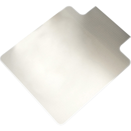 Chairmat with a lip is designed for medium plush pile carpets up to 1/2" thick, including padding. 25" x 12" lip design includes 3/16" thick construction and works in the following work space configurations: writing table, desk, and U-workstation. Textured top makes mat slip-resistant and scuff-resistant. Chairmat also features a studded back to hold mat in place and smooth edge for easy chair movement.