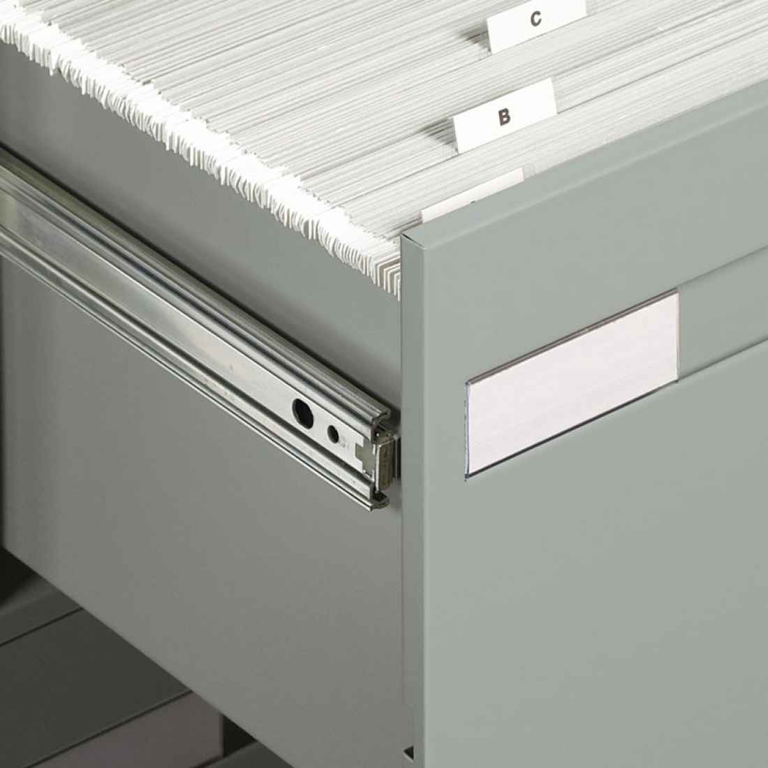 These vertical files with removable cam lock feature ball bearing suspension supports and an easy-to-grasp recessed pull that coordinates with lateral file series.
