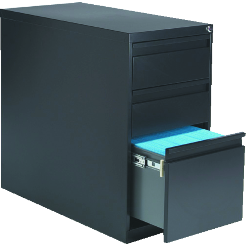 Use freestanding or under most worksurfaces. Looped full pull, levelling guides and lock 2 Box and 1 File Drawer. One pencil tray and one plate divider. 15"W x 19"D x 27-1/8"H.