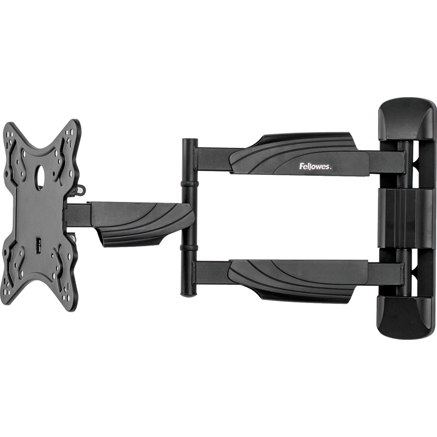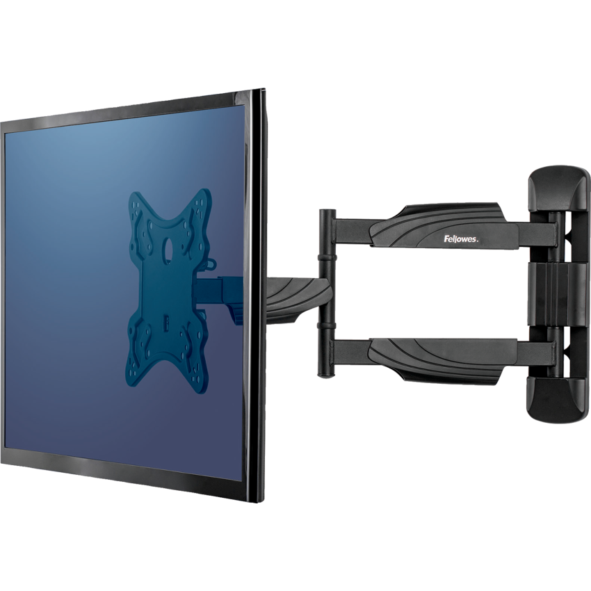 Fully independent adjustable monitor arm with innovative gas spring technology allows for effortless monitor adjustment. Lift range of 20". Tilts 2 degrees up, 12 degrees down. Mounts to wall and can be used sitting or standing. Built in cable management hook on wall mount. VESA 100x100, 100x200, 200x200, 300x300, 400x400. Intended for screens 23" - 55" and up to 77 lbs. Black.