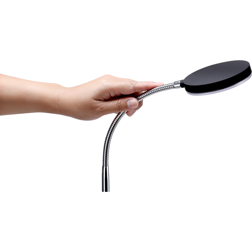 Ideal for desks, co-working spaces, lounge areas and more. Uses cost-efficient LEDs that last up to 25,000 hours and use 85% less energy than incandescent lamps. Flicker-free light zone that is clear of shadows, halos and troublesome glares. Flexible neck to easily position light zone. Full-spectrum lighting mimics natural daylight and reduces eyestrain. 52" high. 4.5W. 450 lumens. 6500K. Black.