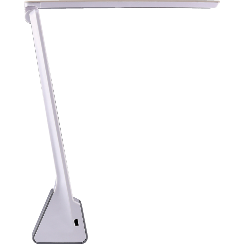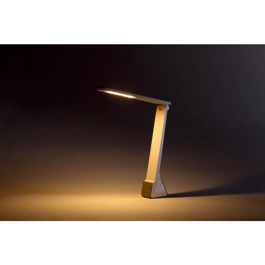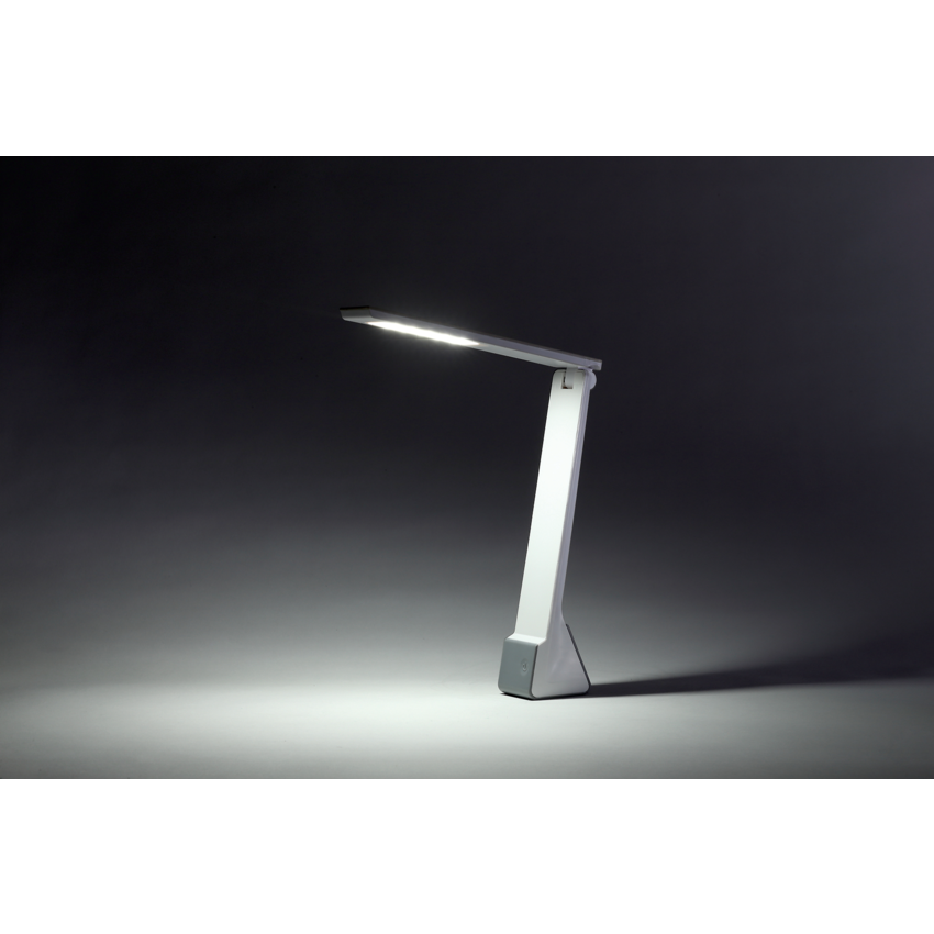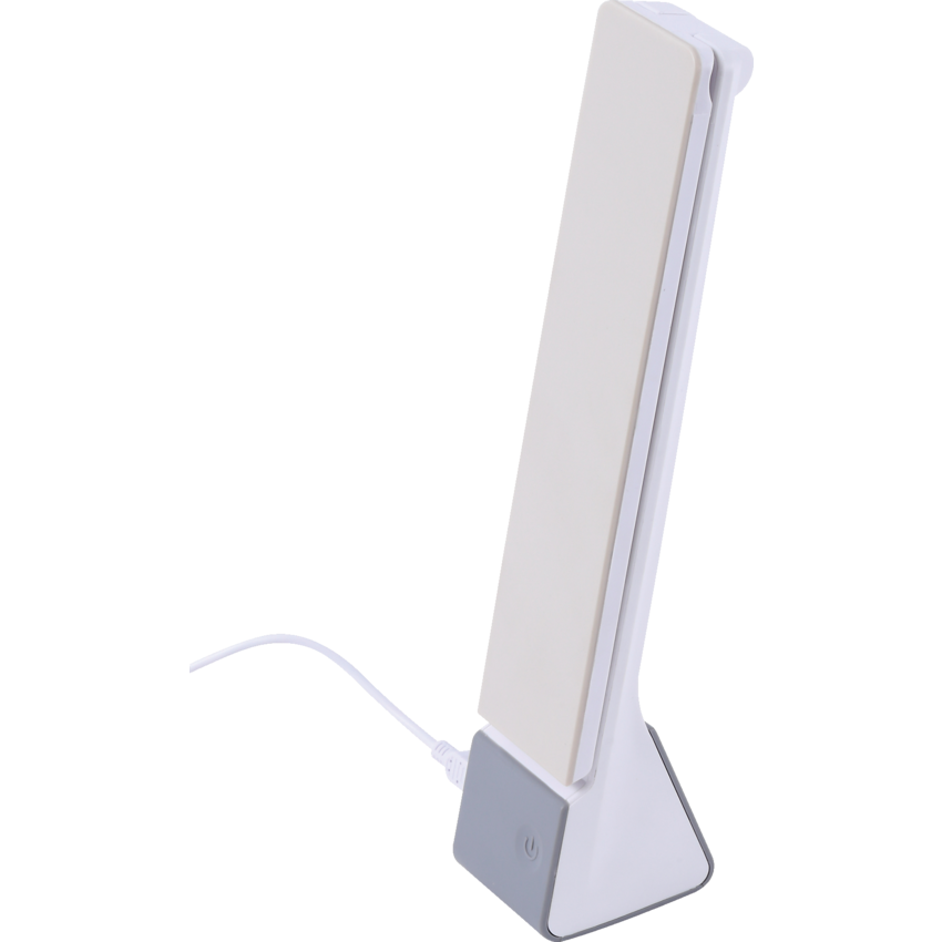 Compact and foldable to fit all desks. Full-spectrum lighting mimics natural daylight and reduces eyestrain. Three adjustable colour temperature nodes for relaxing, reading and tasks. Includes 3' USB charging cord (no adaptor). 4.5W. 180 Lumens. 3000-6500K. Built-in 1200mAh battery for mobile and emergency usage (lasts up to 3 hrs). White.