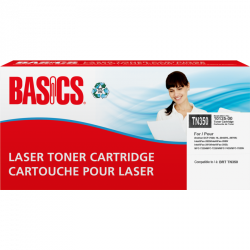 Basics® Brand cartridges are manufactured at North American ISO 9001:2000 registered facilities using returned, original equipment cartridges. These cartridges are designed, engineered and manufactured to meet OEM performance while ensuring top quality and consistent output. OEM# TN350. Basics®. Brother DCP-7010, DCP-7020, DCP-7025, HL-2030, HL-2035, HL-2037, HL-2040, HL-2070N, IntelliFax-2820, IntelliFax-2825, IntelliFax-2910, IntelliFax-2920, MFC-7220, MFC-7225N, MFC-7420, MFC-7820N. Contains a minimum of 74% post-consumer recycled material. Yields 2,500 pages. Black.