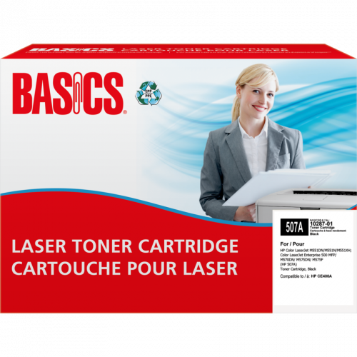 Basics® Brand cartridges are manufactured at North American ISO 9001:2000 registered facilities using returned, original equipment cartridges. These cartridges are designed, engineered and manufactured to meet OEM performance while ensuring top quality and consistent output. OEM# 507A. Basics®. HP Color LaserJet M551N, M551DN, M551XH; Color LaserJet Enterprise 500 MFP M570DN, M575DN, M575F. Contains a minimum of 59% post-consumer recycled content. Yields 5,500 pages. Black.